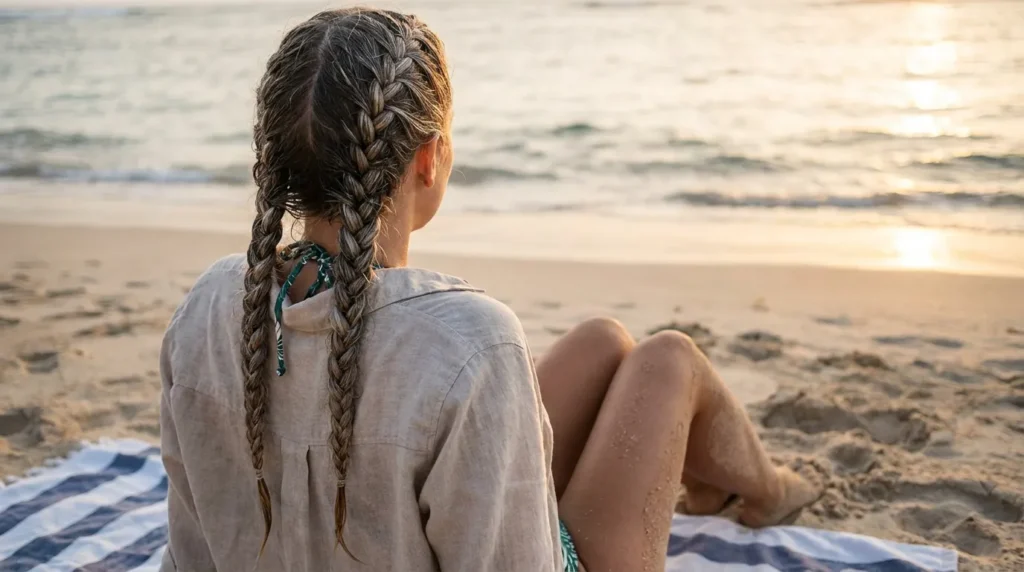 What I love about this method is that it does double duty—it protects your hair from salt damage AND keeps it detangled. When you come out of the water, you can actually run your fingers through your hair instead of dealing with a rat’s nest.