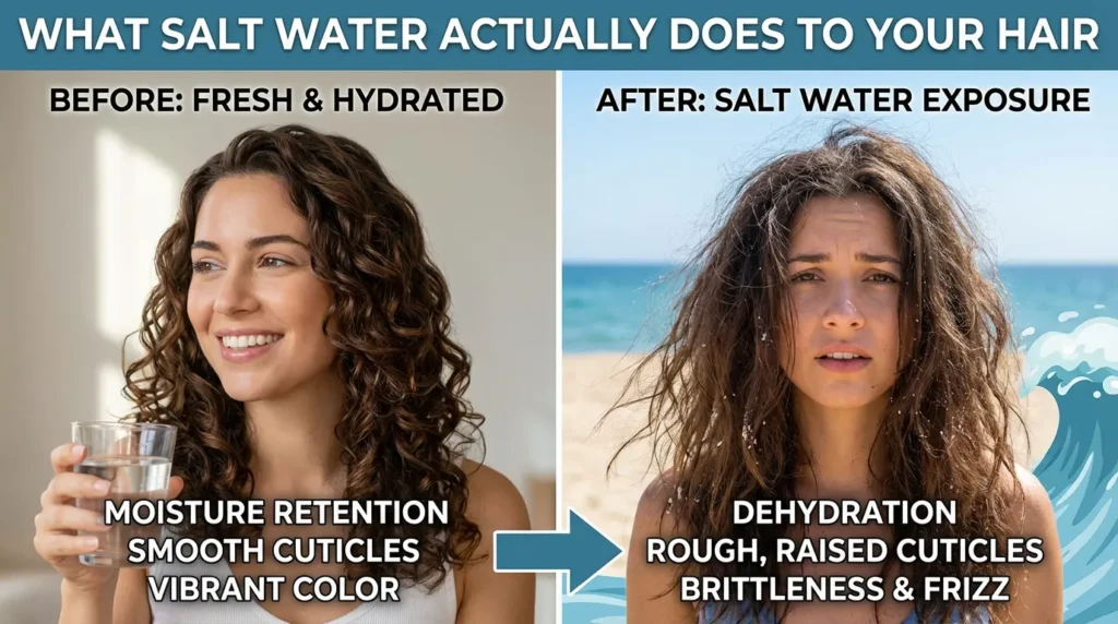Here’s where it gets even more interesting. Salt doesn’t just dry out your hair—it actually breaks down the protein structure. Your hair is made primarily of a protein called keratin, and salt water can weaken those bonds over time. This leads to breakage, split ends, and that awful straw-like texture nobody wants.