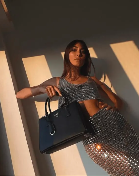 If you like outfits that feel a bit editorial and unexpected, this combo is for you. A sequined crop top paired with matching or coordinated sequin knee-high socks creates a bold, fashion-forward vibe that you don’t see every day.