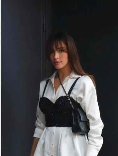 Layering a sequin bustier over a white button-down shirt is such a chic way to wear sequins without going full sparkle. The classic shirt tones down the glam just enough, while the bustier shapes your upper body and adds interest.