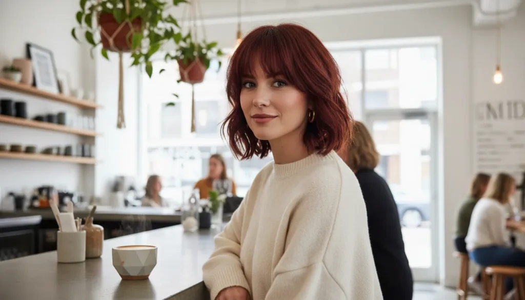 The practical side matters too. Layered hair with curtain bangs is easier to style than you might think. The layers create natural movement, so you’re not fighting to add volume or texture. The curtain bangs fall naturally with minimal effort. Even if you air-dry, this style looks intentional and put-together.