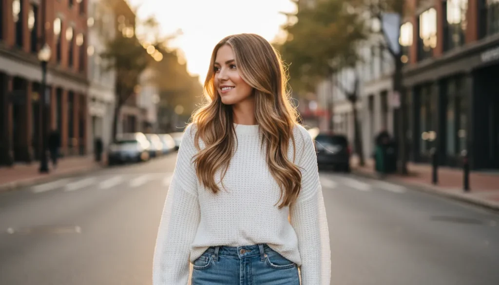 Each wave catches light beautifully, creating a luxe finish that feels expensive yet effortless. This warm, dimensional shade flatters every season and pairs perfectly with everything from cozy sweaters to summer dresses.