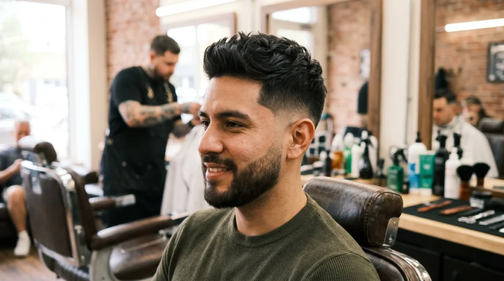 Now here’s what makes this a 2026 style and not just a classic: the beard line work. Clean edges where the fade meets the beard create a structured frame for the face without any dramatic undercut. It’s the detail most guys overlook, and it’s everything.