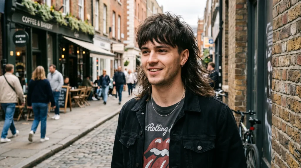 Maintenance is genuinely easy. A light texturizing spray is enough to keep the layers from clumping together. According to Daimon Barber’s 2026 men’s hair trend guide, shaggy and textured cuts are among the standout styles this year, and this mullet variation is a prime example of why.