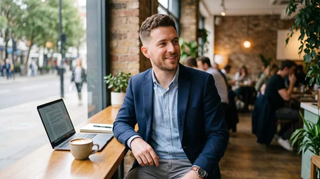 This is the professional mens haircut 2026 for men who want something fresh without stepping outside their comfort zone. The fade is clean and tight. The top is long enough to form a natural soft wave. It’s sharp enough for a button-down and relaxed enough for a weekend.