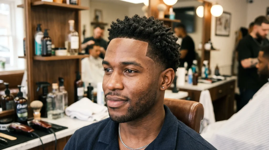 What I love about this cut is the forward arc of the hair. It gives the front a character that prevents the whole thing from feeling generic, without committing to anything dramatic. It’s the detail that takes a standard fade from ordinary to actually interesting.