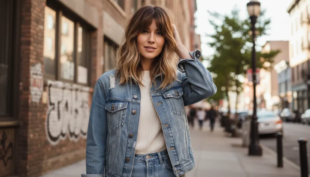 If you’ve got highlights or balayage, this style shows them off beautifully. The face-framing pieces catch the light in all the right ways.