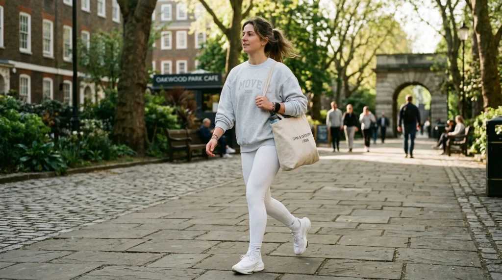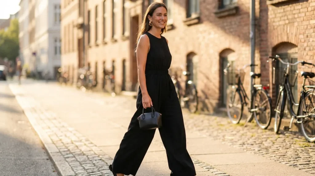Neutral tones keep this squarely in minimalist elegant outfit territory — nothing is competing, everything is contributing. Simple accessories let the silhouette do the talking. This is the combination you wear when you want to feel your best without announcing that you’re trying.