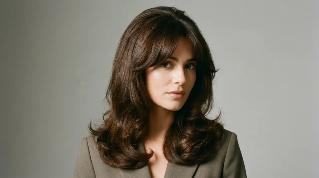 Ask for: Dimensional brunette with caramel or honey highlights concentrated around the face. This adds depth without looking too highlighted.