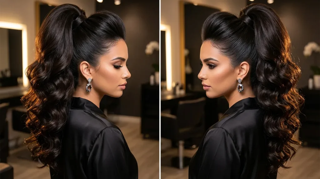 Yes, even ponytails can have mob wife hair energy. The trick is backcombing the crown before securing your ponytail, then curling the ponytail itself for maximum drama.