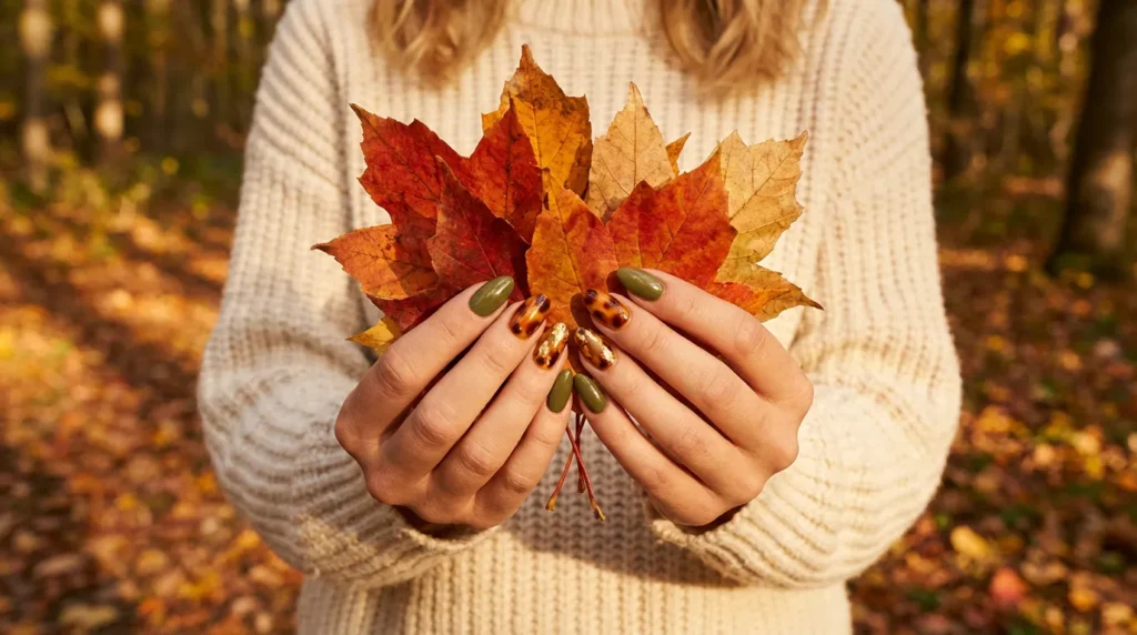 If you loved experimenting with burnt orange nail ideas, olive green gives you that same bold-but-cozy energy with a slightly moodier twist.