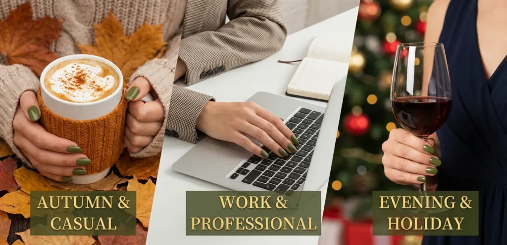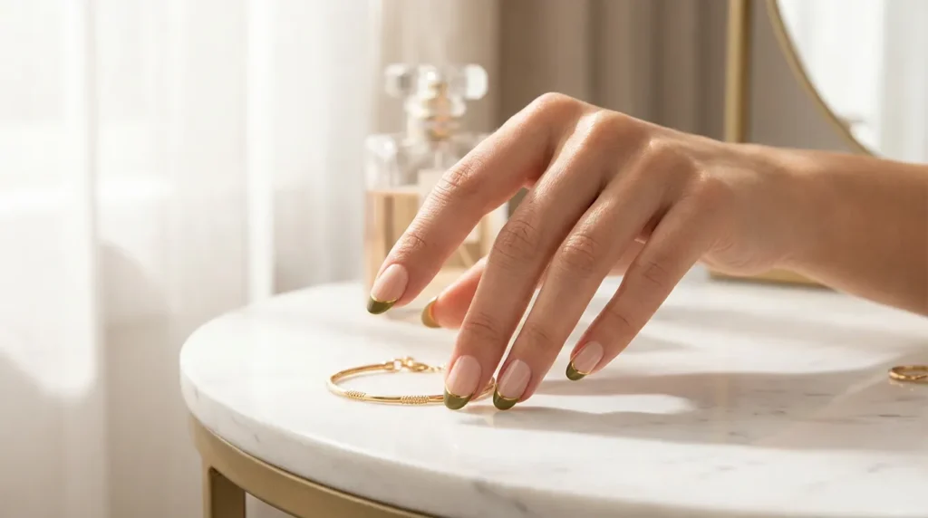 Olive green nails are surprisingly easy to style. Here’s what works: