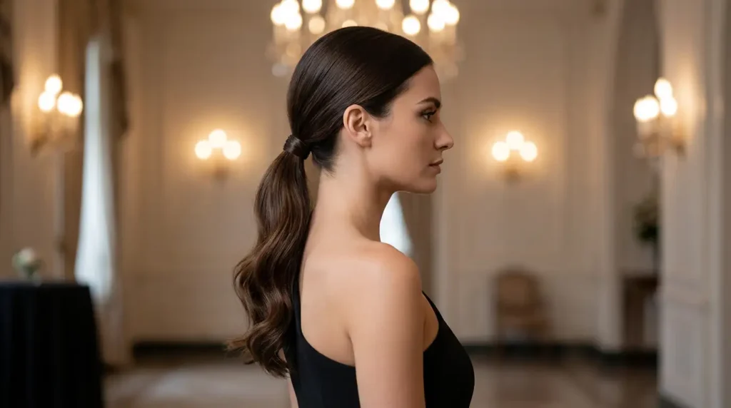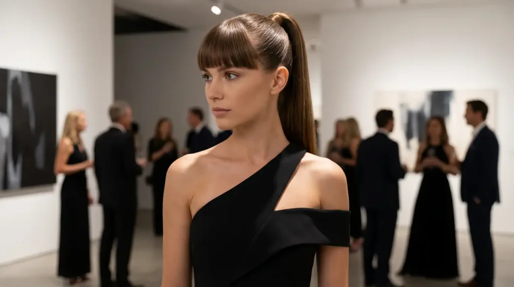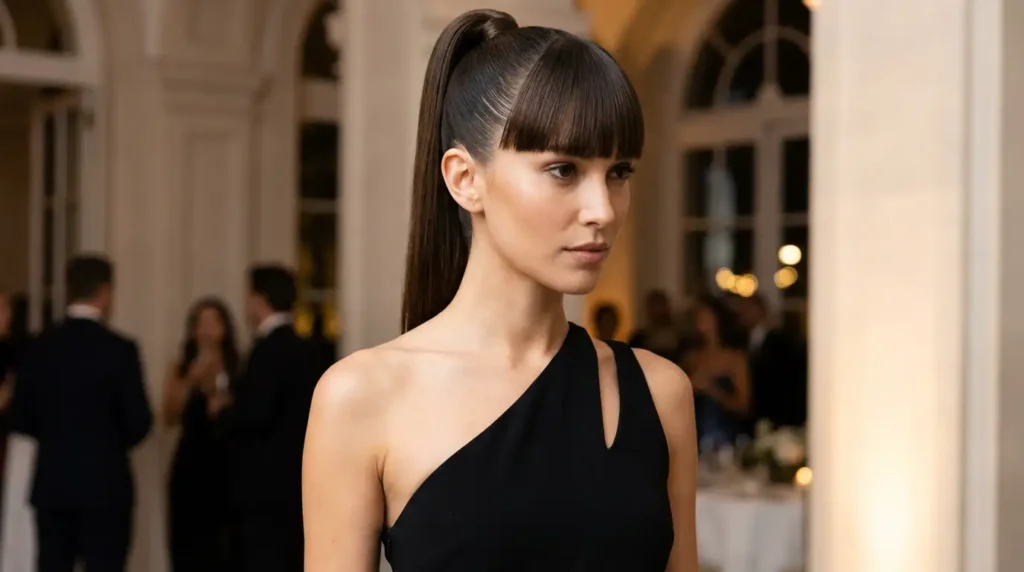 Absolutely! High ponytails work beautifully with one shoulder dresses because they show off the entire neckline and create elegant, clean lines. Low ponytails are sophisticated and timeless. The key is making the ponytail feel intentional and polished, not casual or everyday.