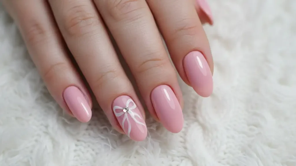 Baby pink and blush tones are your go-to if you want something subtle and pretty. These shades give that soft, wintery glow that works for literally any occasion. They’re perfect if you’ve got a conservative workplace but still want festive nails.
