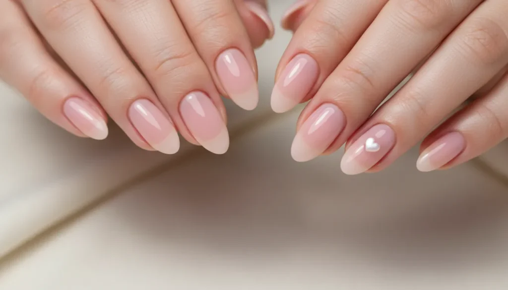 5. Soft Pink Almond with Heart Accent