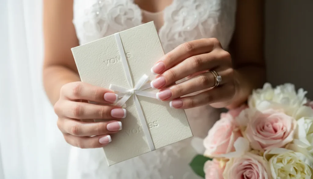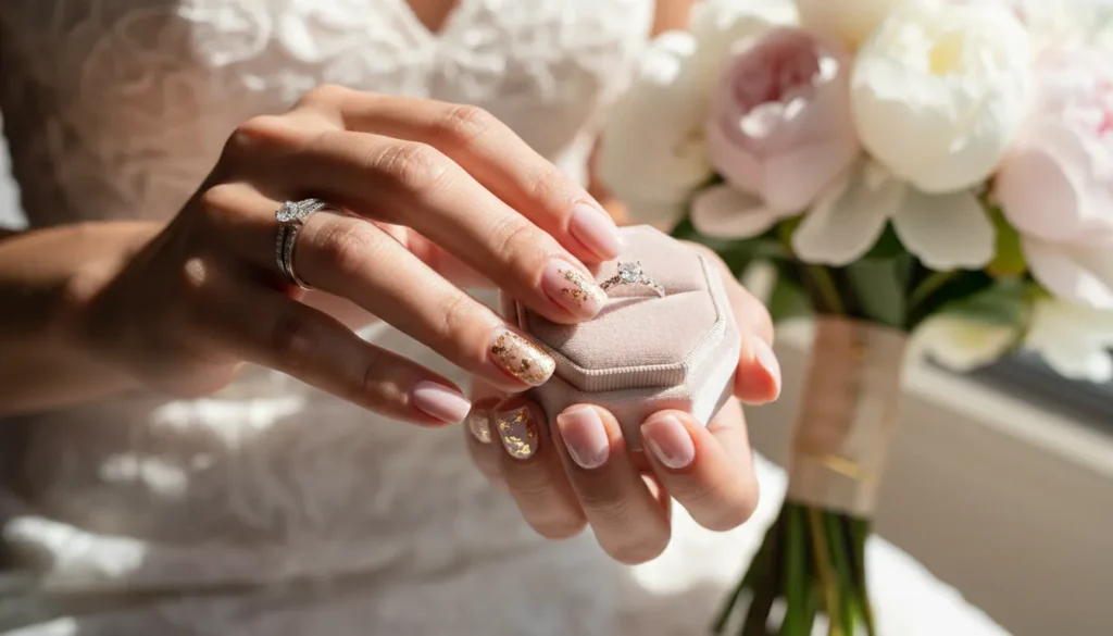 Let’s be real—you need your wedding manicure to last. Gel nails typically last 2-3 weeks without chipping, making them perfect for your wedding day and honeymoon. Acrylic nails with gel polish offer even more durability if you want length.