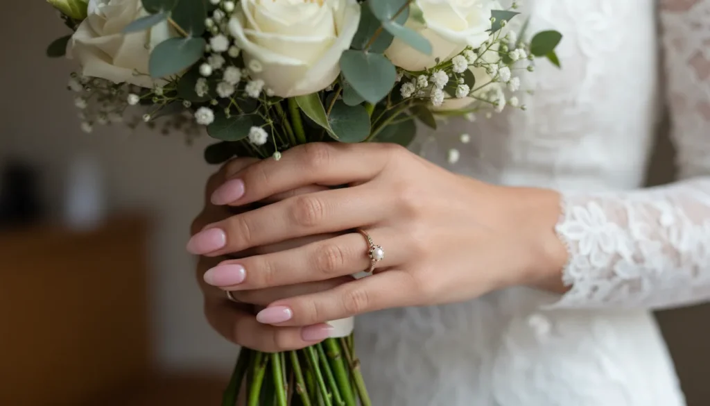 Soft pinks and French manicures are the most popular and classic options for wedding nails, and they consistently deliver that clean, polished finish every bride wants. Pink works with literally any wedding aesthetic, from rustic barn ceremonies to black-tie ballroom receptions.