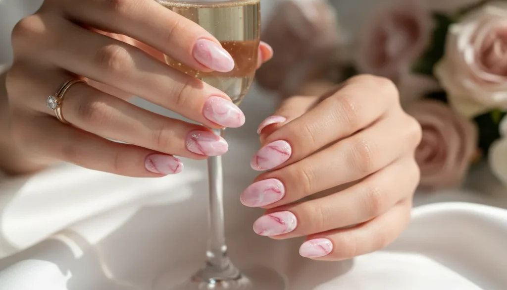 If you want something dreamy and soft, pink marble nails with subtle shimmer are gorgeous. The marble effect looks almost like watercolor, and the tiny bits of shimmer catch the light beautifully.