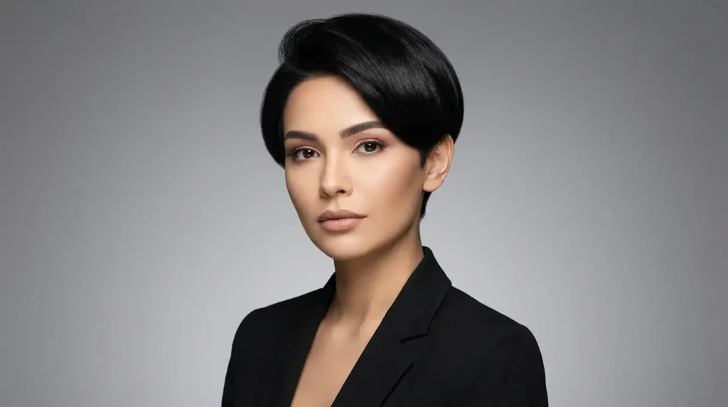 Now here’s a bold choice. The blunt micro pixie keeps everything short and even, creating this incredibly chic, almost androgynous look. This pixie hairstyle for straight hair works beautifully because straight hair shows off the precision of the cut without any texture getting in the way.