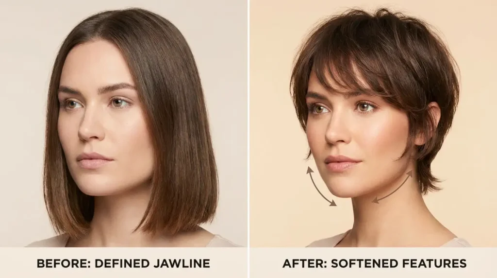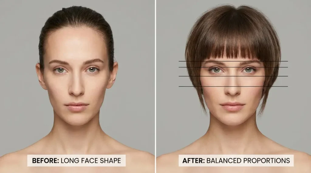 Skip the sky-high crown volume and vertical styling. Instead, embrace styles that create horizontal lines—straight-across bangs, ear-grazing side pieces, or even a pixie bob that adds width. These proportions create a more balanced, harmonious look.