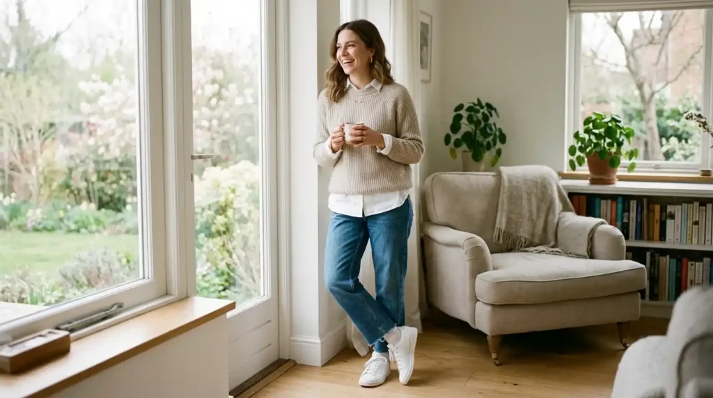 | Layered Basics | Shirt, soft sweater, relaxed denim, sneakers | Work-from-home, errands |