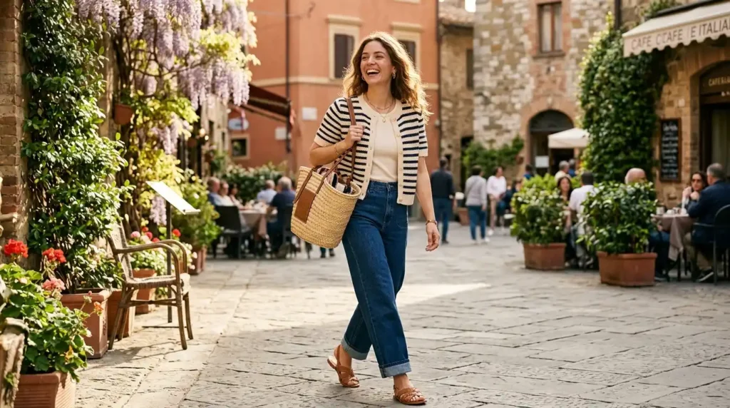 In my experience, the outfits that actually get worn are never the complicated ones. They’re the reliable ones. The striped trousers that go with three different tops. The black midi dress that works with sneakers and sandals both. The layered basics that adapt to changing temperatures without needing to be rethought entirely.