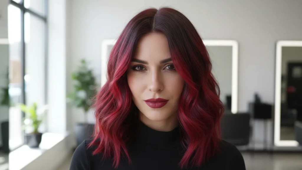 This is for my bold friends who aren’t afraid of drama. The burgundy starts subtly at your roots and gradually intensifies toward the ends, creating this stunning gradient that’s absolutely eye-catching.