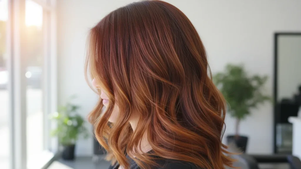 The key here is the dimensional placement. Your colorist isn’t just slapping color everywhere – they’re strategically placing brighter auburn tones where light would naturally hit your hair, with deeper auburn in the shadows. This creates natural-looking dimension that makes your hair look fuller and healthier.