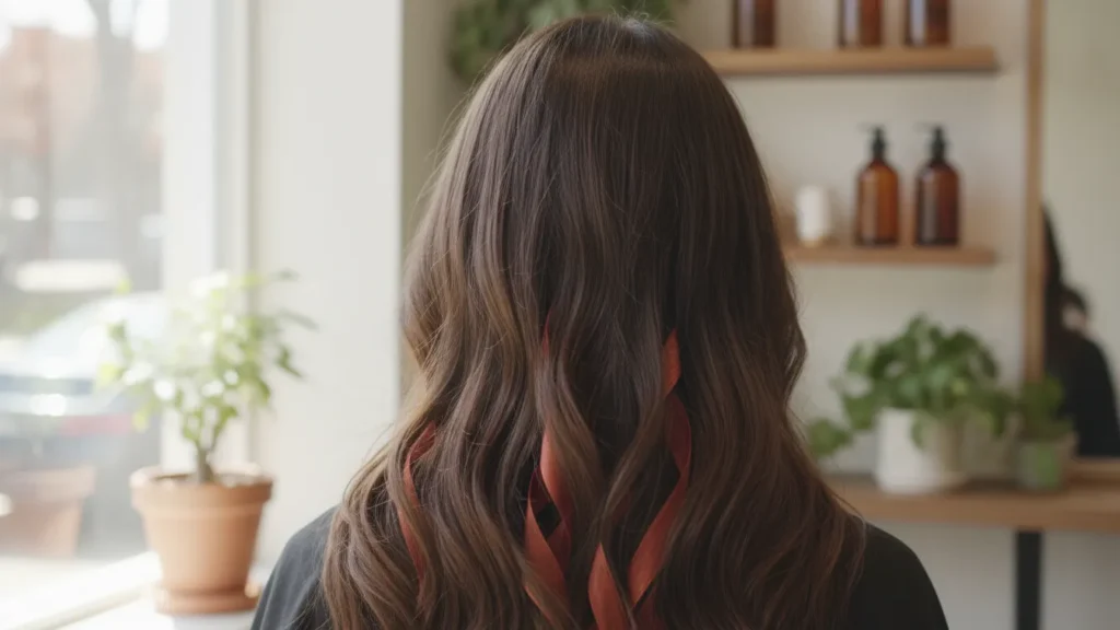 Let me walk you through what to expect when you’re getting red highlights on brunette hair professionally done.
