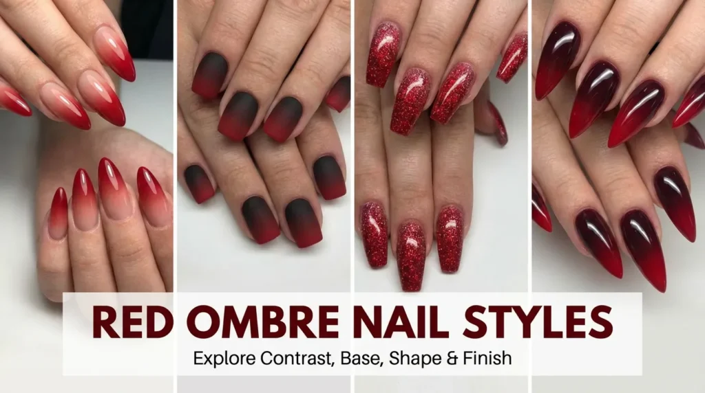 The right combination ensures your red ombre nail design looks intentional and polished rather than accidental or messy.