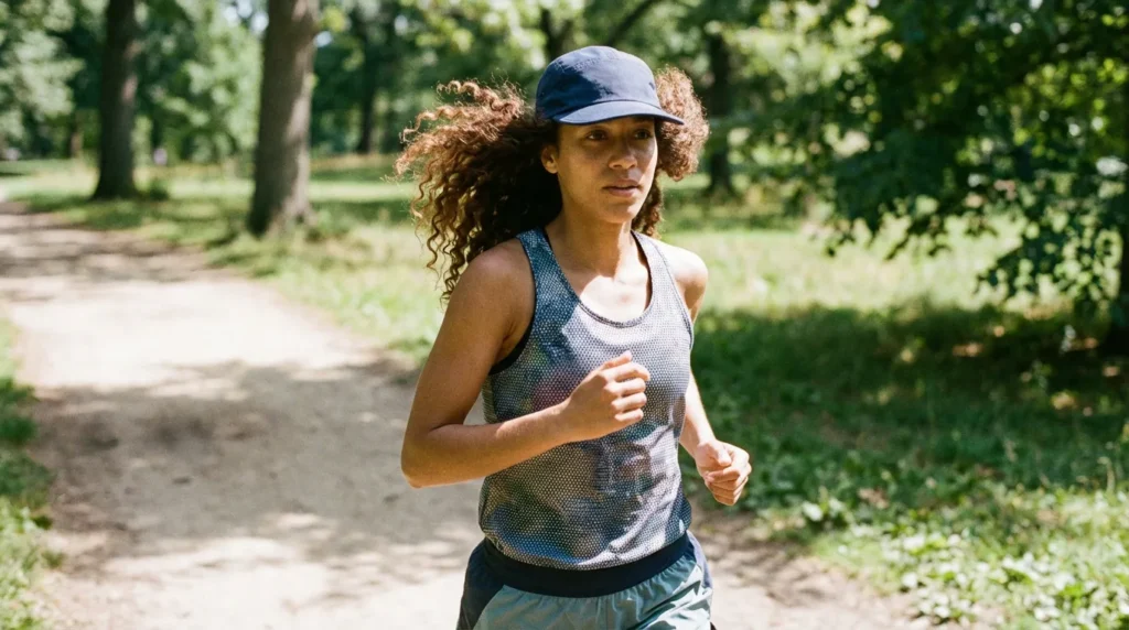 Running with curls can be tricky, but here’s the secret: don’t fight your natural texture. Let your curls be free under a soft, breathable cap.