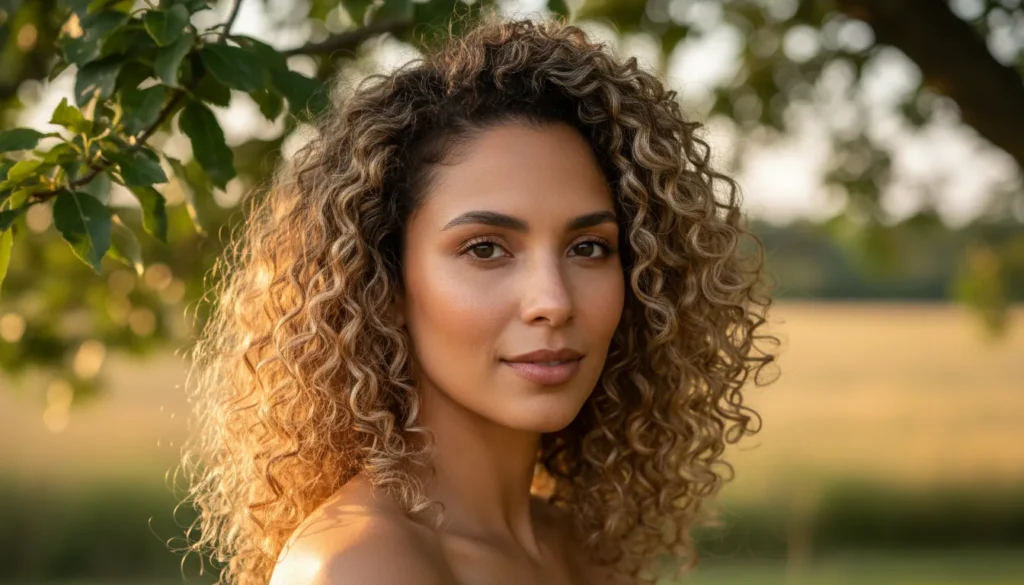 What I love about this combination is how the color enhances your natural texture instead of fighting against it. The sunset-lit highlights create depth that makes each curl pop.