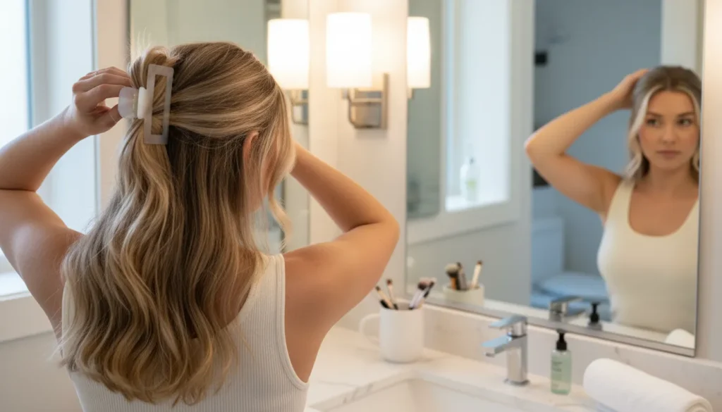A claw clip or barrette adds a playful touch without looking overdone. It’s one of those five-minute styles that somehow looks like you put in way more effort.