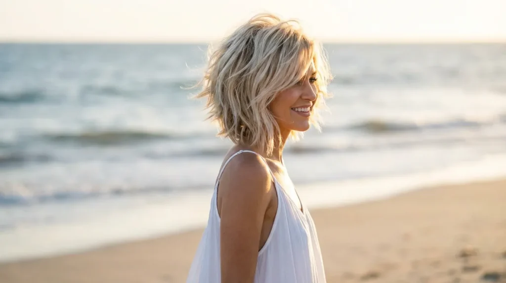 What really seals the deal is versatility. Whether your fine hair is naturally straight, wavy, or somewhere in between, a shaggy bob works with your texture instead of against it. The layers enhance whatever you’ve got going on, making fine hair look fuller and more voluminous without requiring daily heat styling or expensive products.