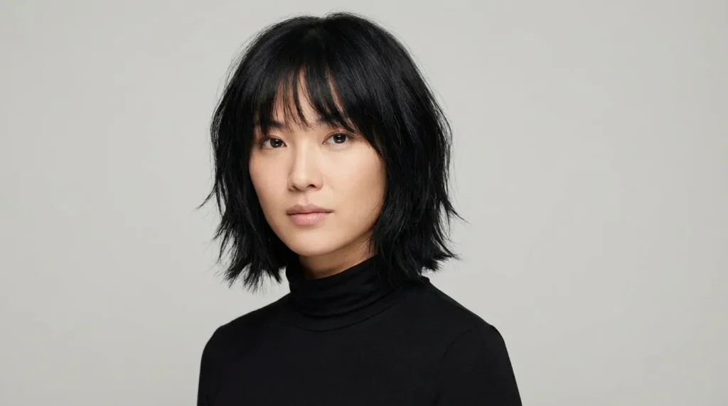 The wispy bangs are the perfect finishing touch. They’re not heavy or blunt, so they won’t overwhelm fine hair. Instead, they add personality and draw attention to your eyes. This shaggy bob style for fine hair works especially well if you want something with attitude and edge.