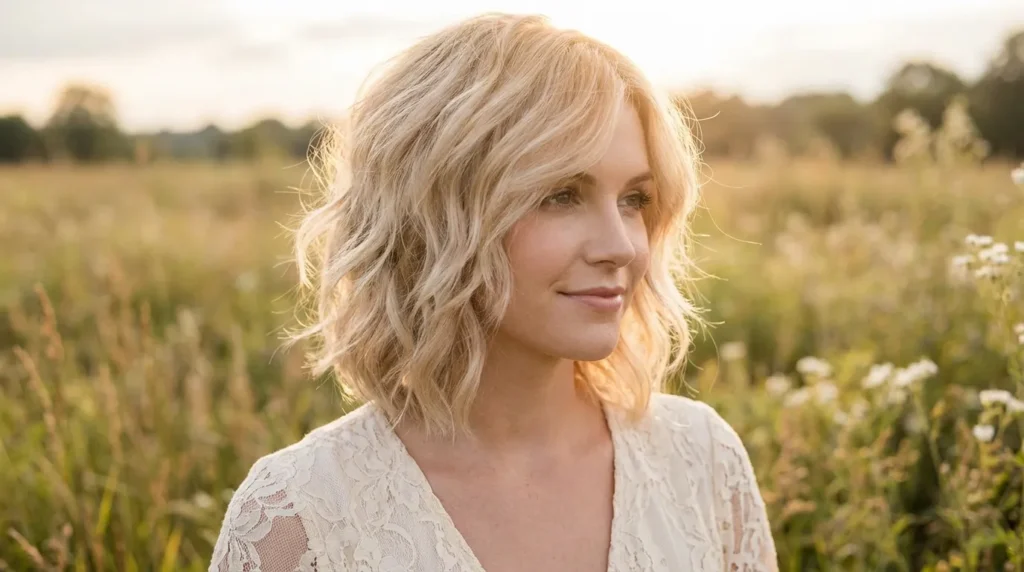 13. Soft Blonde Shaggy Bob with Loose Waves