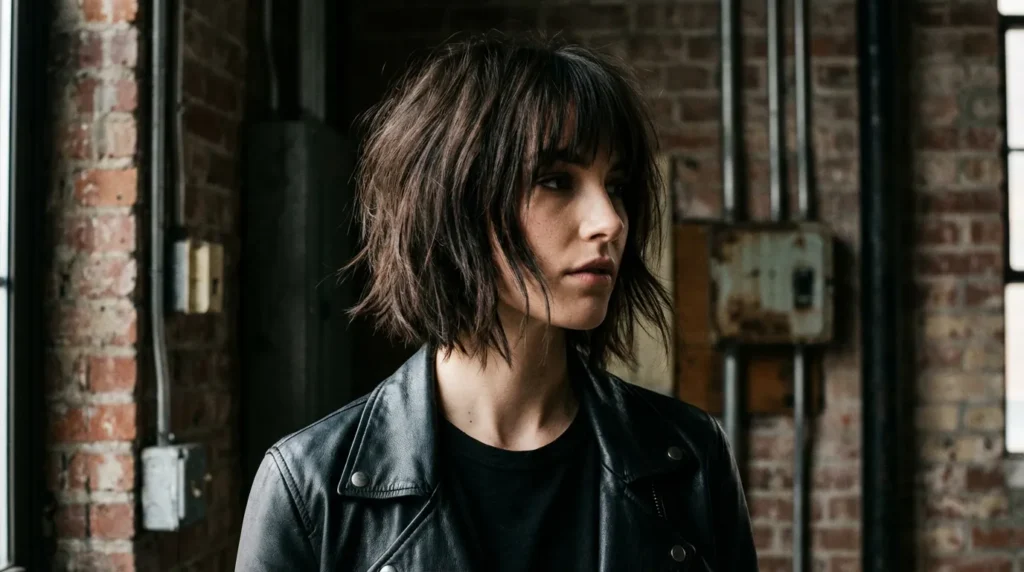 2. Dark Choppy Shaggy Bob with Wispy Bangs