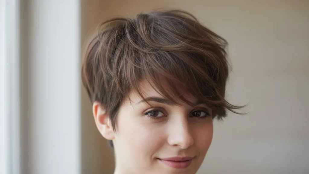 Who says pixie cuts can’t have movement? The wavy pixie with long bangs proves that even super short hair can have beautiful texture. This style keeps more length in front, giving you options for how you wear it.