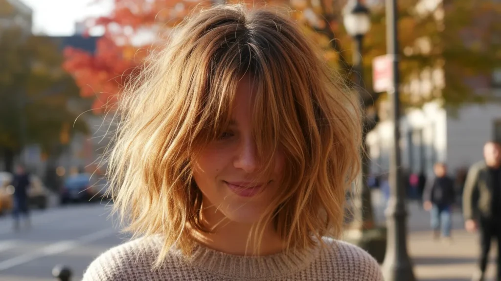 The wavy bob with balayage is classic fall perfection. The hand-painted highlights add dimension and movement, while the waves keep everything feeling soft and romantic. It’s sophisticated without trying too hard.