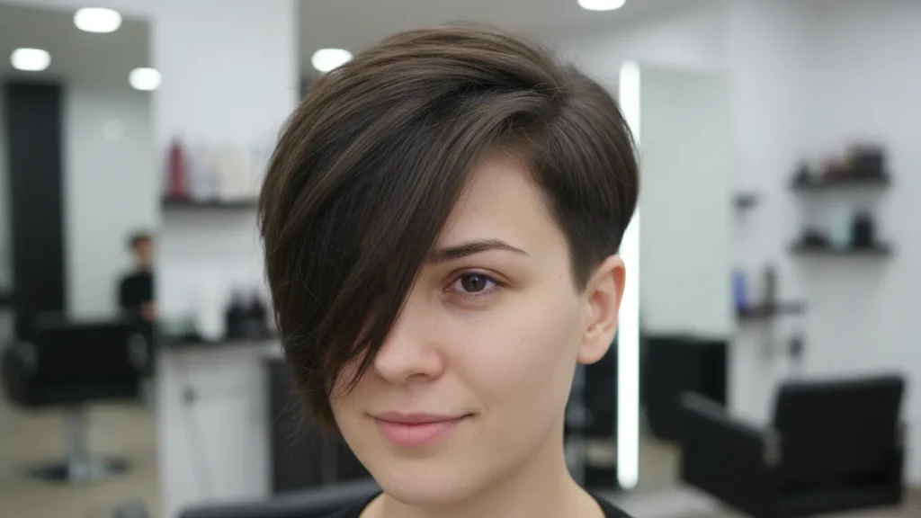 The key here is keeping some length on top while the sides stay shorter. Your stylist will add layers throughout to create that piecey, textured finish that’s so on-trend right now. It’s perfect for women who want something bold but still feminine.