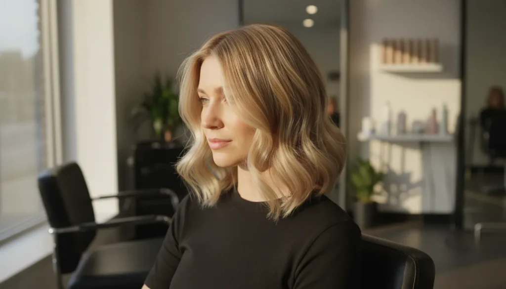 You know that warm, flickering quality of candlelight? That’s what dimensional highlights in a wavy blonde bob recreate in hair form. Multiple tones — some warmer, some cooler — layered through a soft wavy cut create depth that catches the light beautifully.
