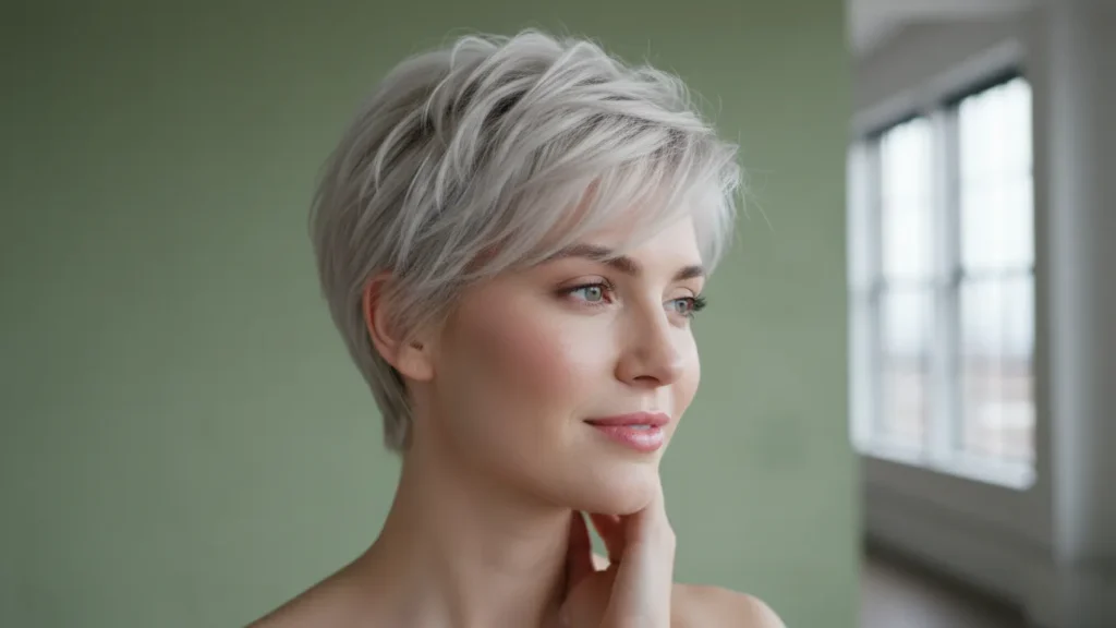 What I love about this style is how it grows out. Unlike blunt pixies, layered short hairstyles like this look intentional even when you’re overdue for a trim.