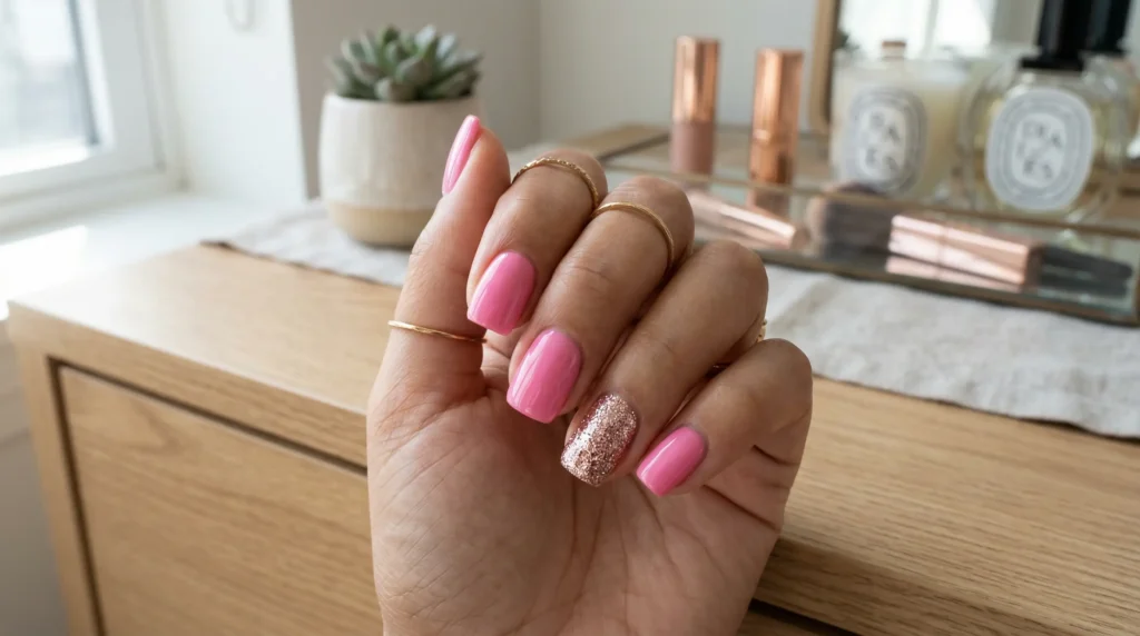 7. Glazed Barbie Pink & Rose Gold: Bold Meets Balanced