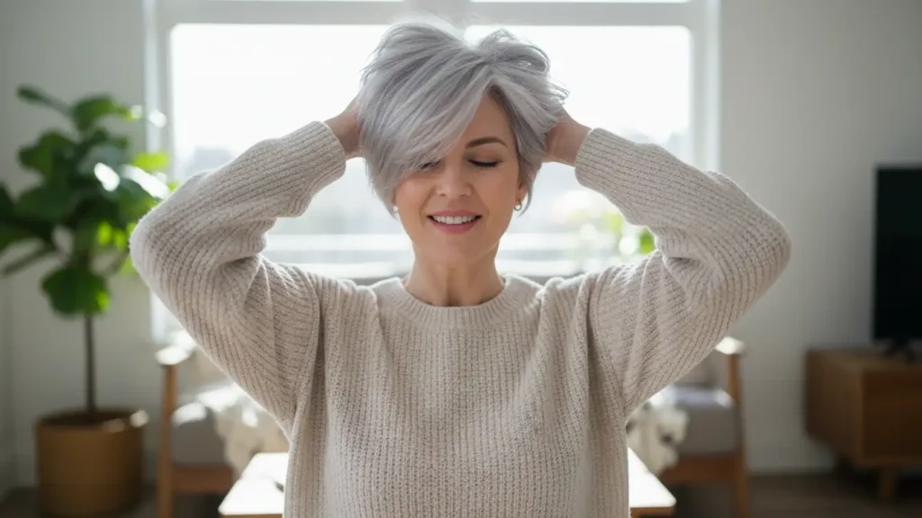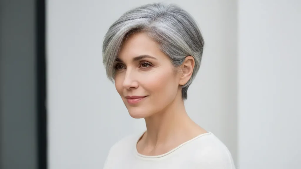 If you’re transitioning to natural gray, the grow-out phase can be awkward. This is where shorter cuts really shine—they make the transition faster because you’re cutting off more of the old color with each trim. Strategic highlighting can also help blend the growing silver with your remaining colored hair.