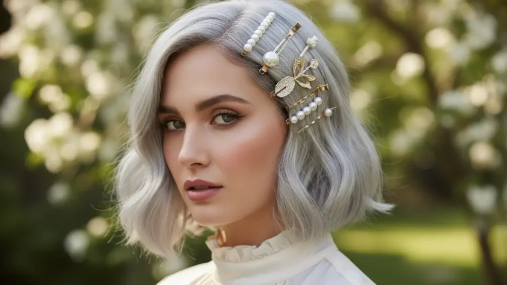 Don’t underestimate the power of accessories with short silver hair. Decorative clips, pins, and barrettes add personality and can transform your look instantly. The silver provides a neutral canvas that makes accessories pop.