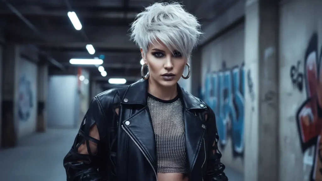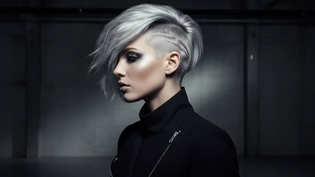 Now here’s where it gets edgy. An undercut pixie features shaved or closely cropped sides with longer hair on top. The contrast is dramatic, and in silver, it’s striking. This is definitely for someone who wants to make a statement.