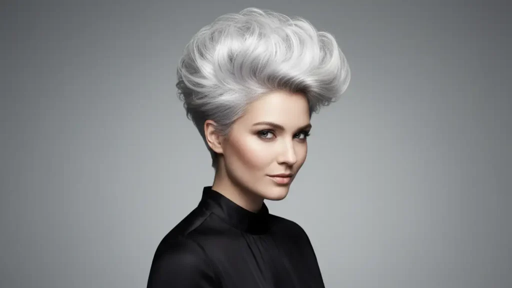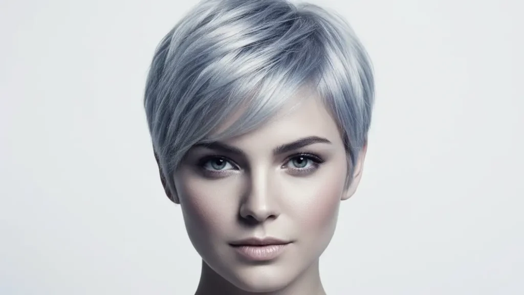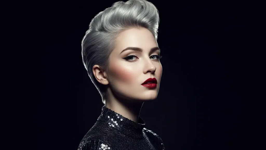 A pompadour pixie features volume and height at the front, swept back dramatically. It’s bold, it’s vintage-inspired, and in silver, it looks absolutely stunning. This style requires some styling effort but makes a serious statement.
