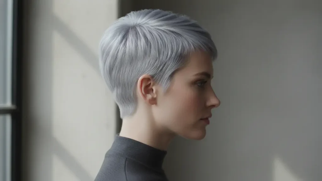 You can’t talk about short silver hair ideas without mentioning the classic pixie. It’s short, it’s chic, and in silver, it’s absolutely stunning. The tapered sides and slightly longer top create this perfect balance of feminine and edgy.