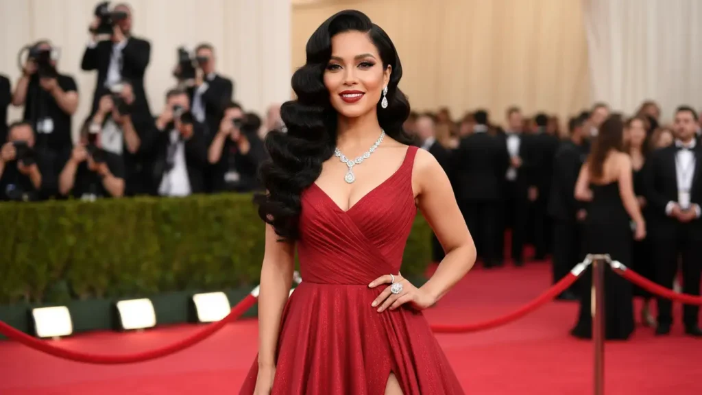 For glamorous, vintage-inspired looks, go for classic Hollywood waves with a deep side part. The dramatic part creates elegant, old-Hollywood vibes perfect for formal events.