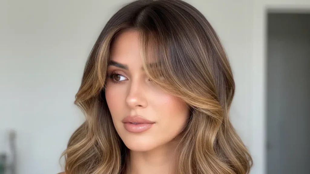 Curtain bangs paired with a side part create a soft, face-framing effect that’s incredibly flattering. The sweeping fringe blends seamlessly into the rest of your hair.